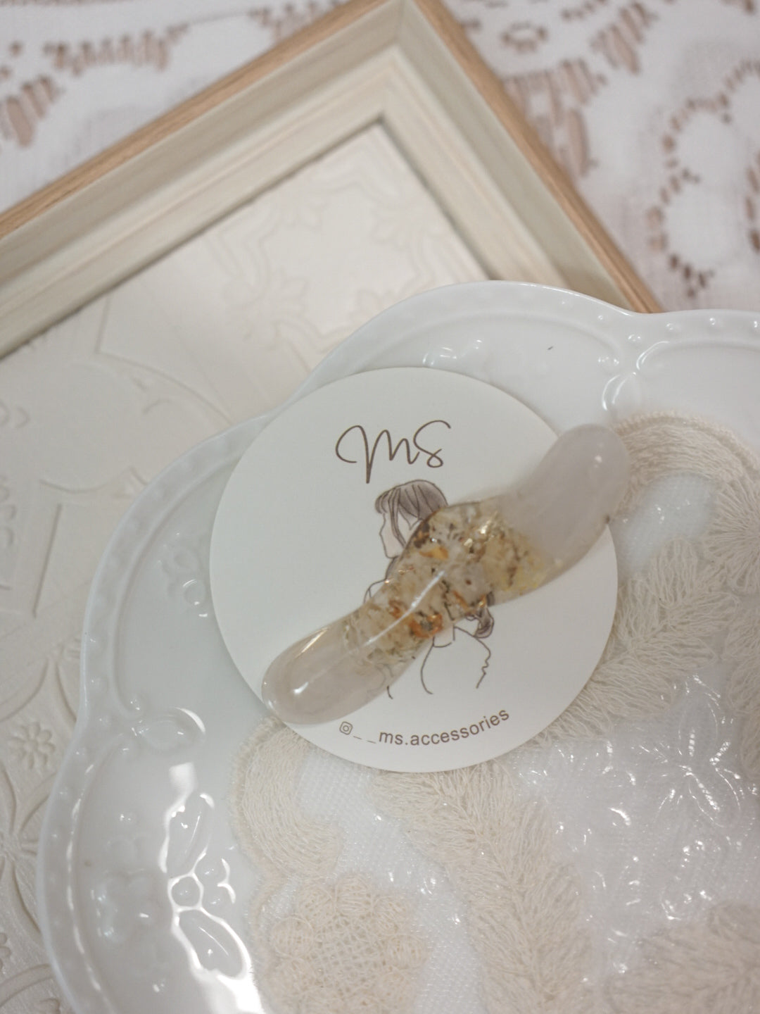 主要出售以乾花和UV樹脂凝膠製作的手作飾物