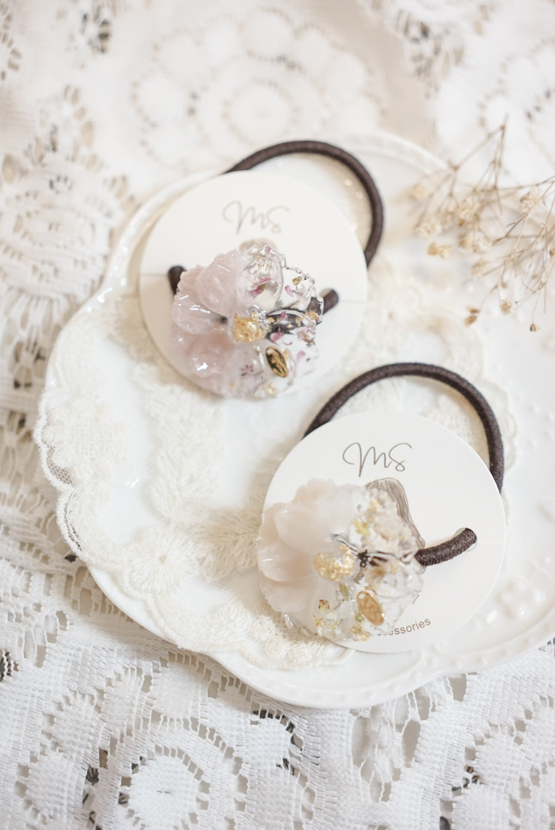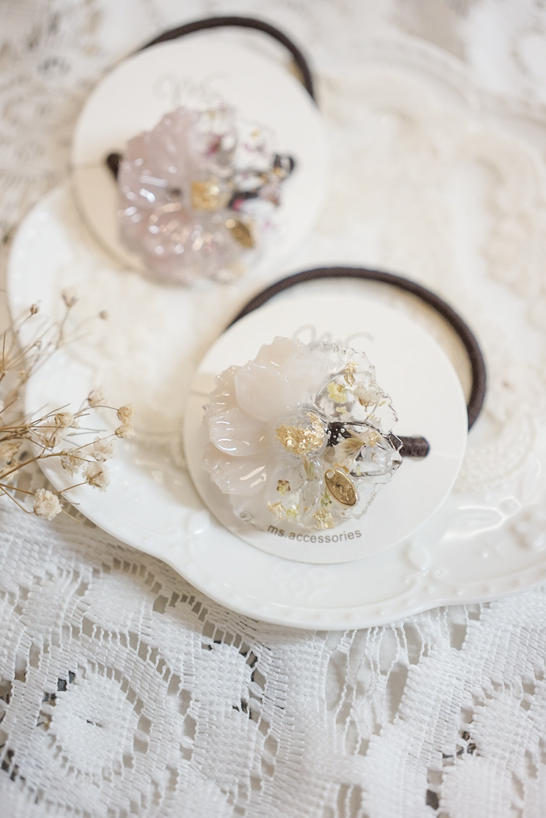主要出售以乾花和UV樹脂凝膠製作的手作飾物