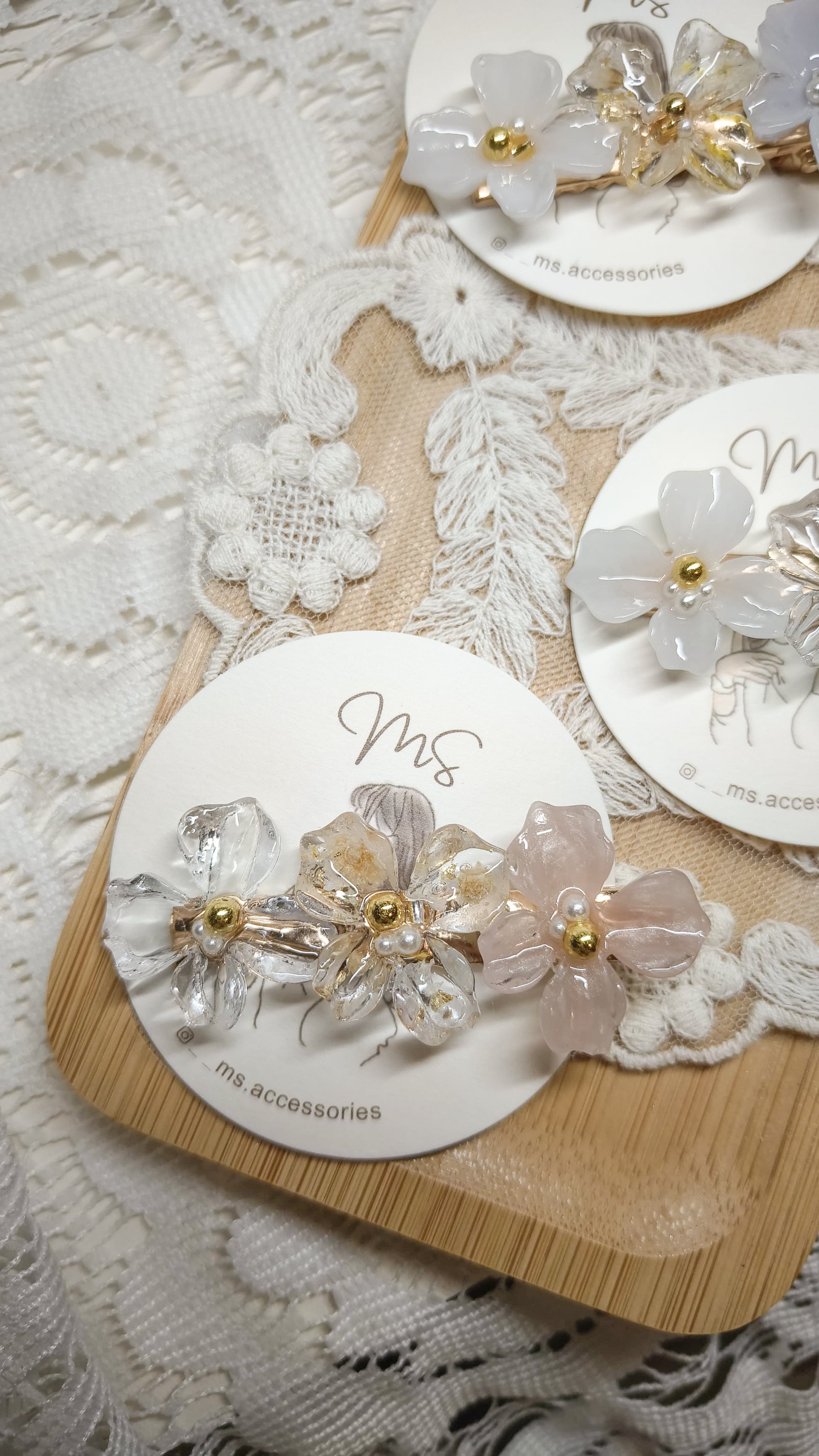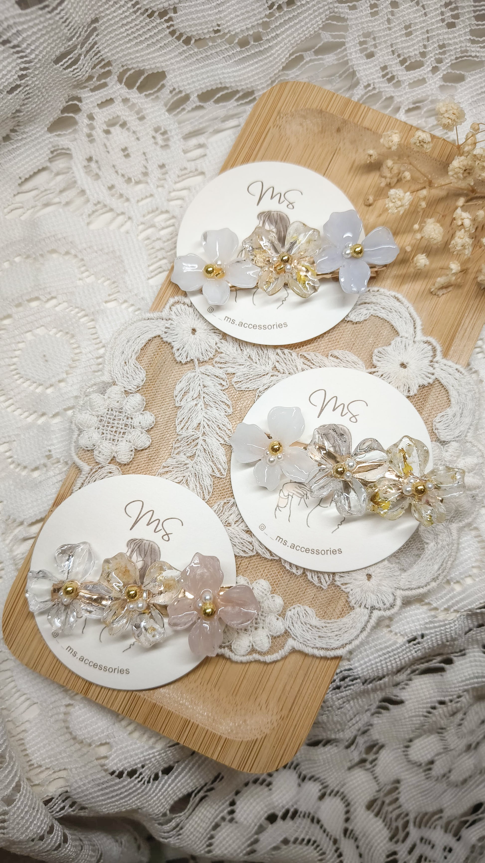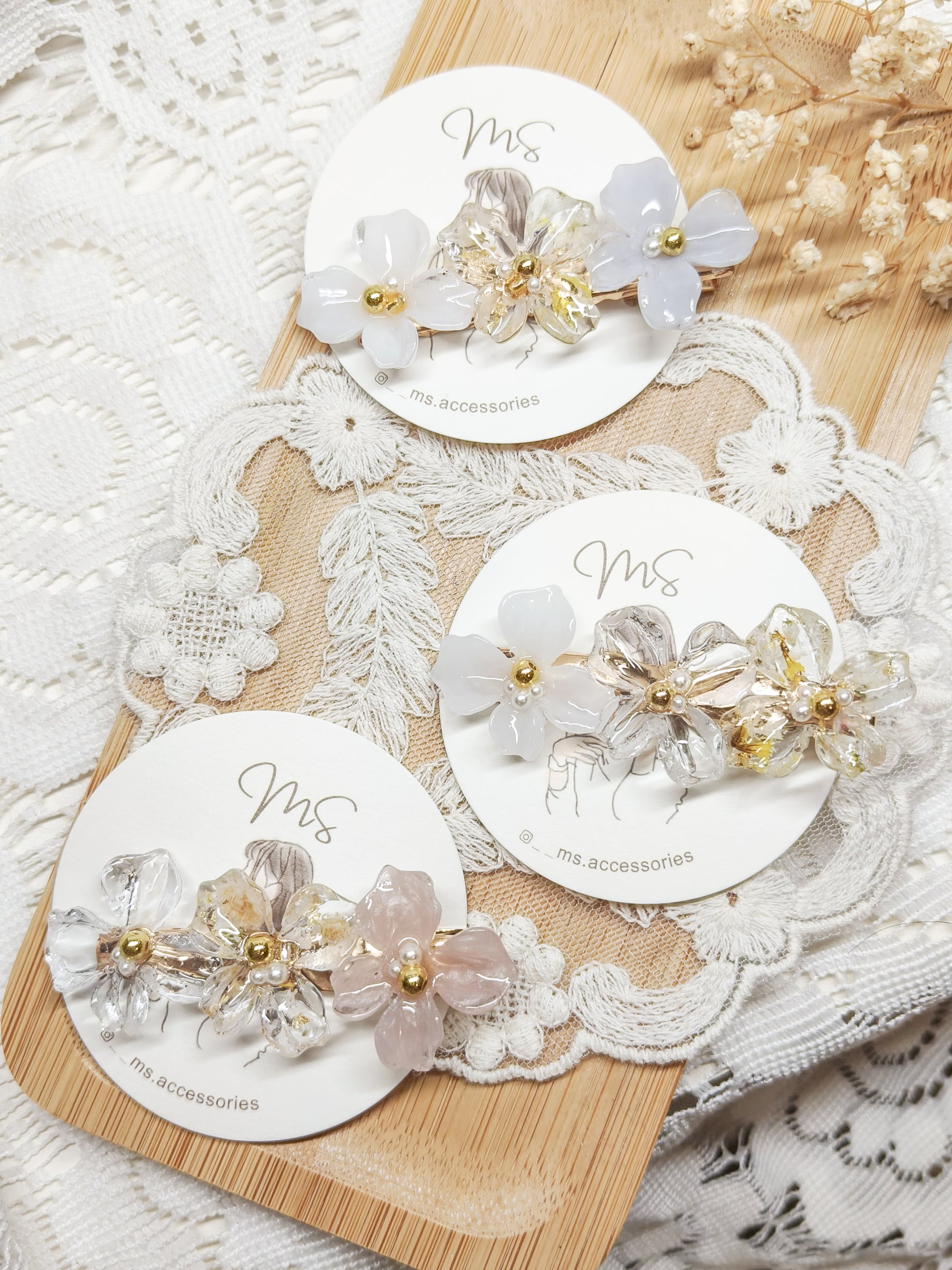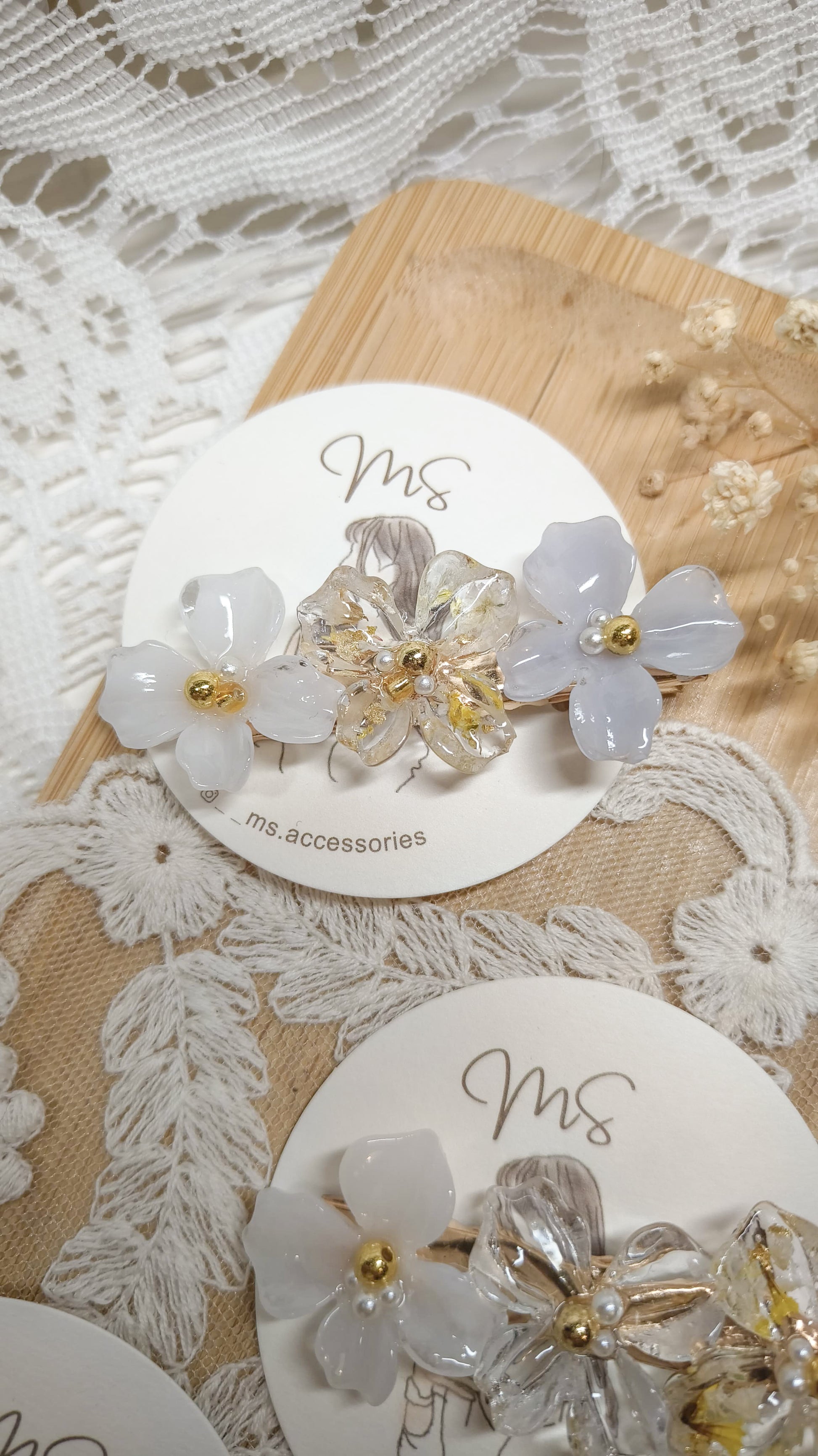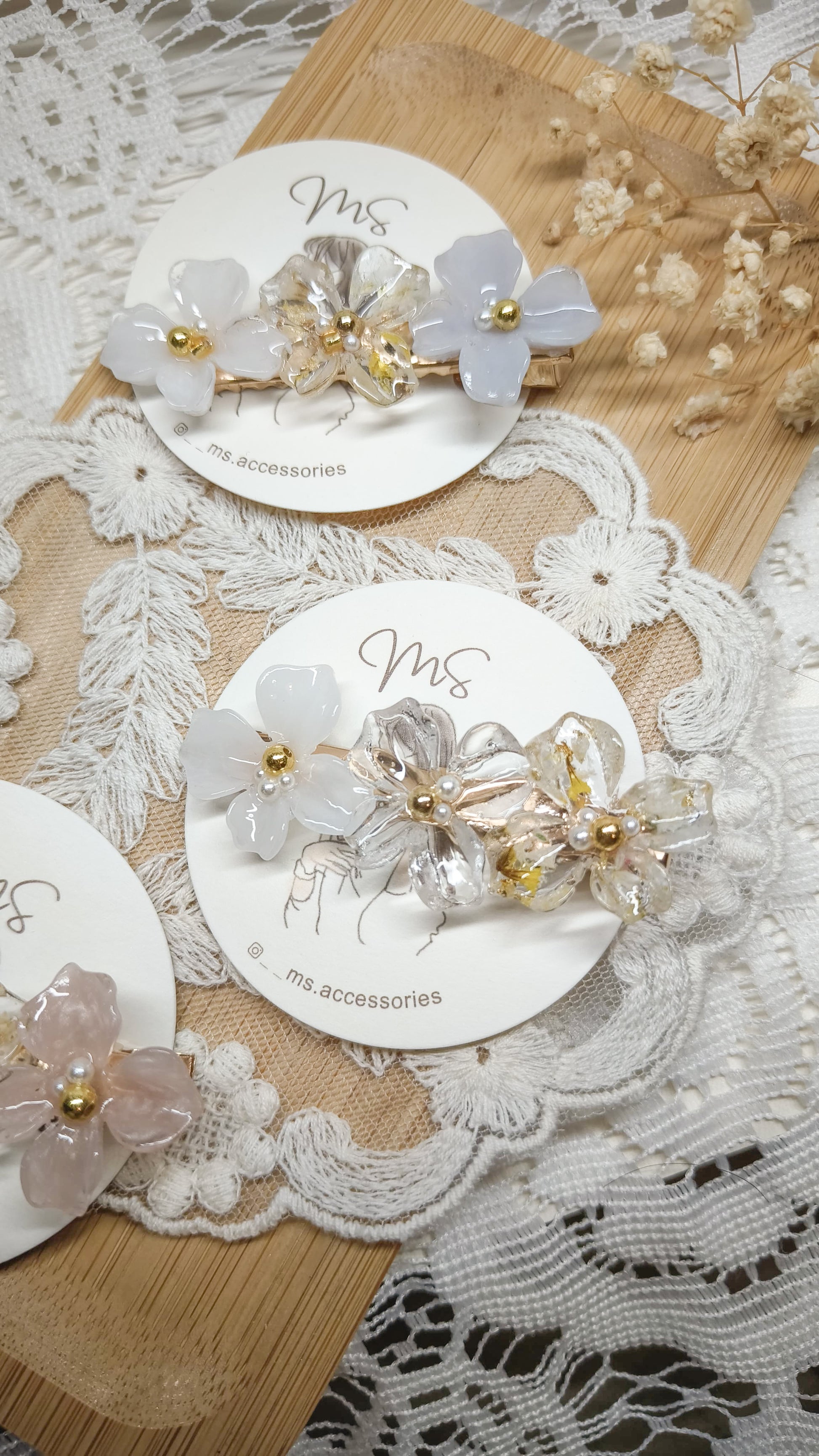 主要出售以乾花和UV樹脂凝膠製作的手作飾物